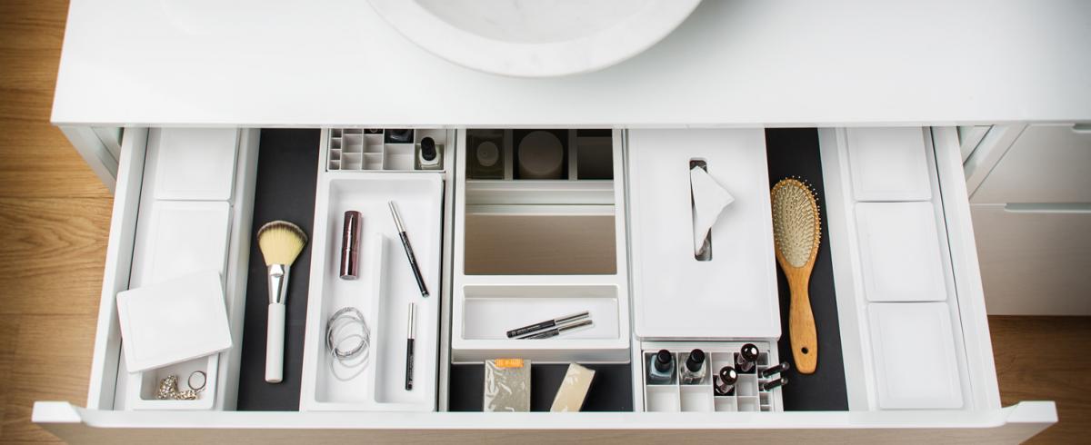 Les éléments de protection pour tiroir sous-évier de la gamme ONDA sont conçus pour faciliter la finition du tiroir/grand tiroir de salle de bains.
