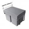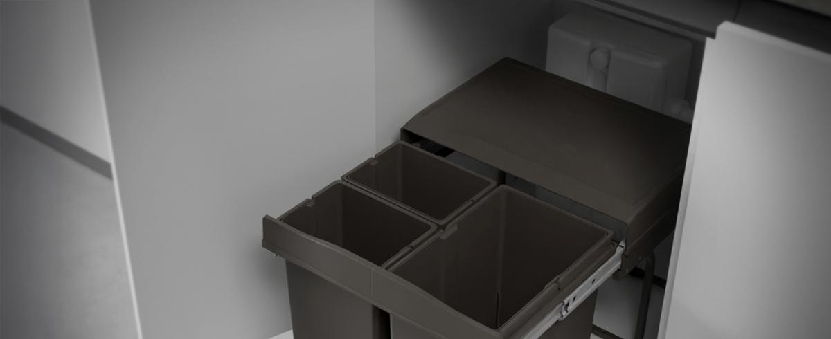Contenitori per la raccolta differenziata, ideali per spazi con profondità ridotta. Dimensioni compatte, grande capacità (30L) ed installazione rapida sotto qualsiasi tipo di lavello. Il coperchio consente l’appoggio di guanti, spugne e piccoli oggetti. Dotato di speciali guide ad estrazione totale.