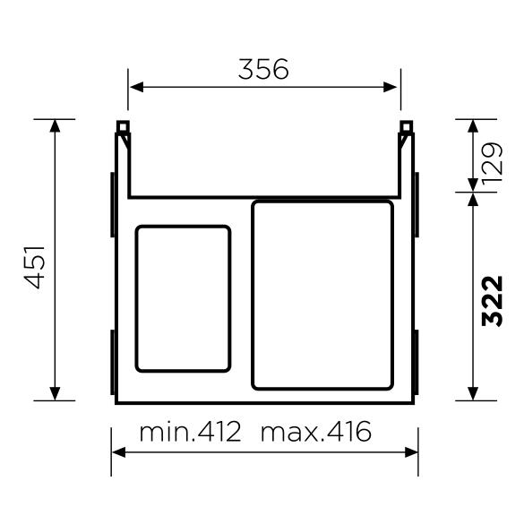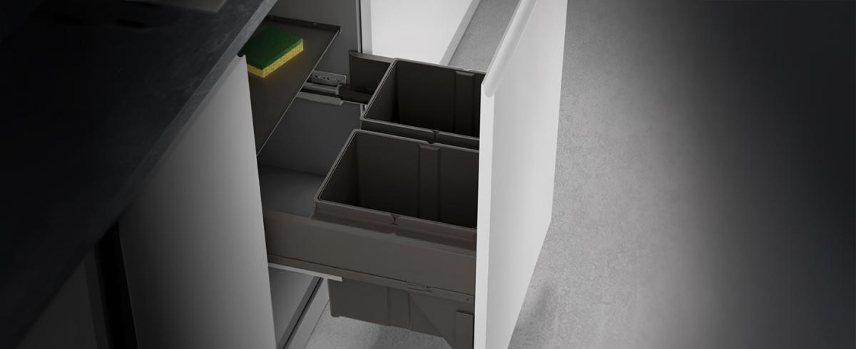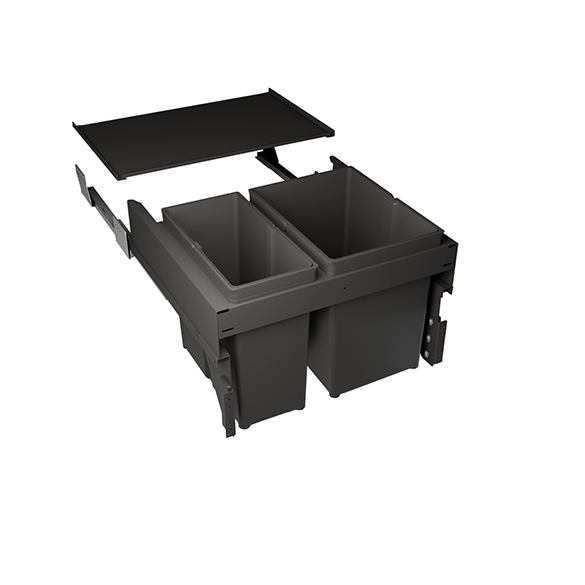 Raccoglitore ad estrazione frontale con secchi sospesi.