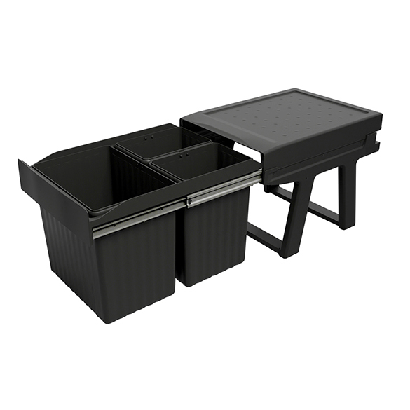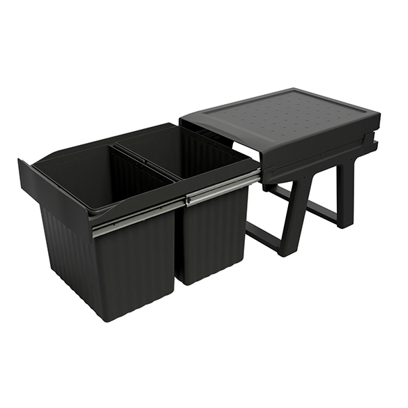Hauteur 335mm, deux bacs avec capacité 16 L chacun